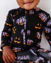 - Two-way cross-body front zipper, footless romper