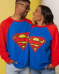 Match your mini in this vibrant Superman crewneck sweatshirt!