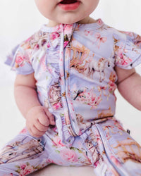 - Two-way cross-body front zipper, footless romper
