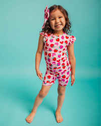 - Set includes double ruffle cap sleeve top and shorts