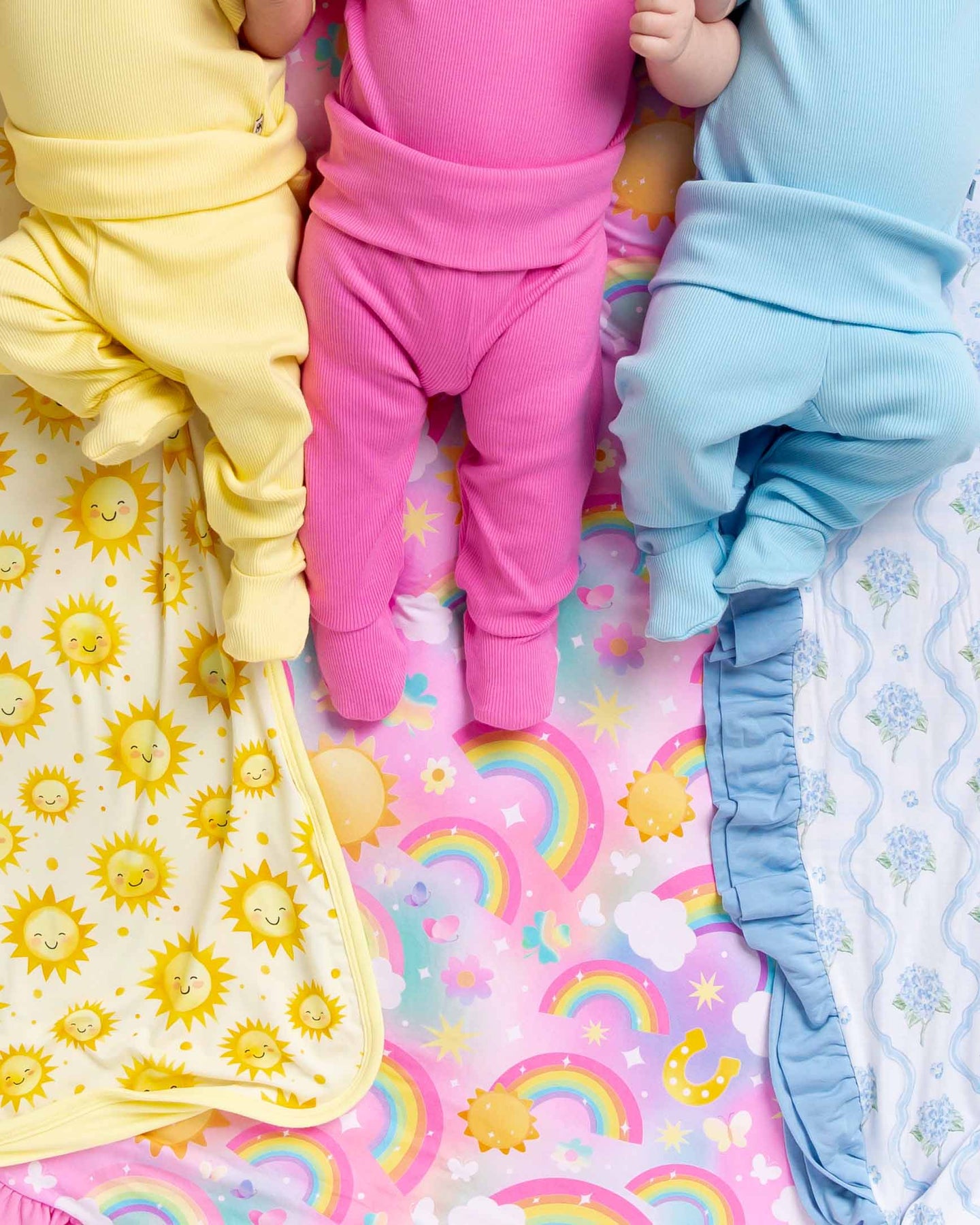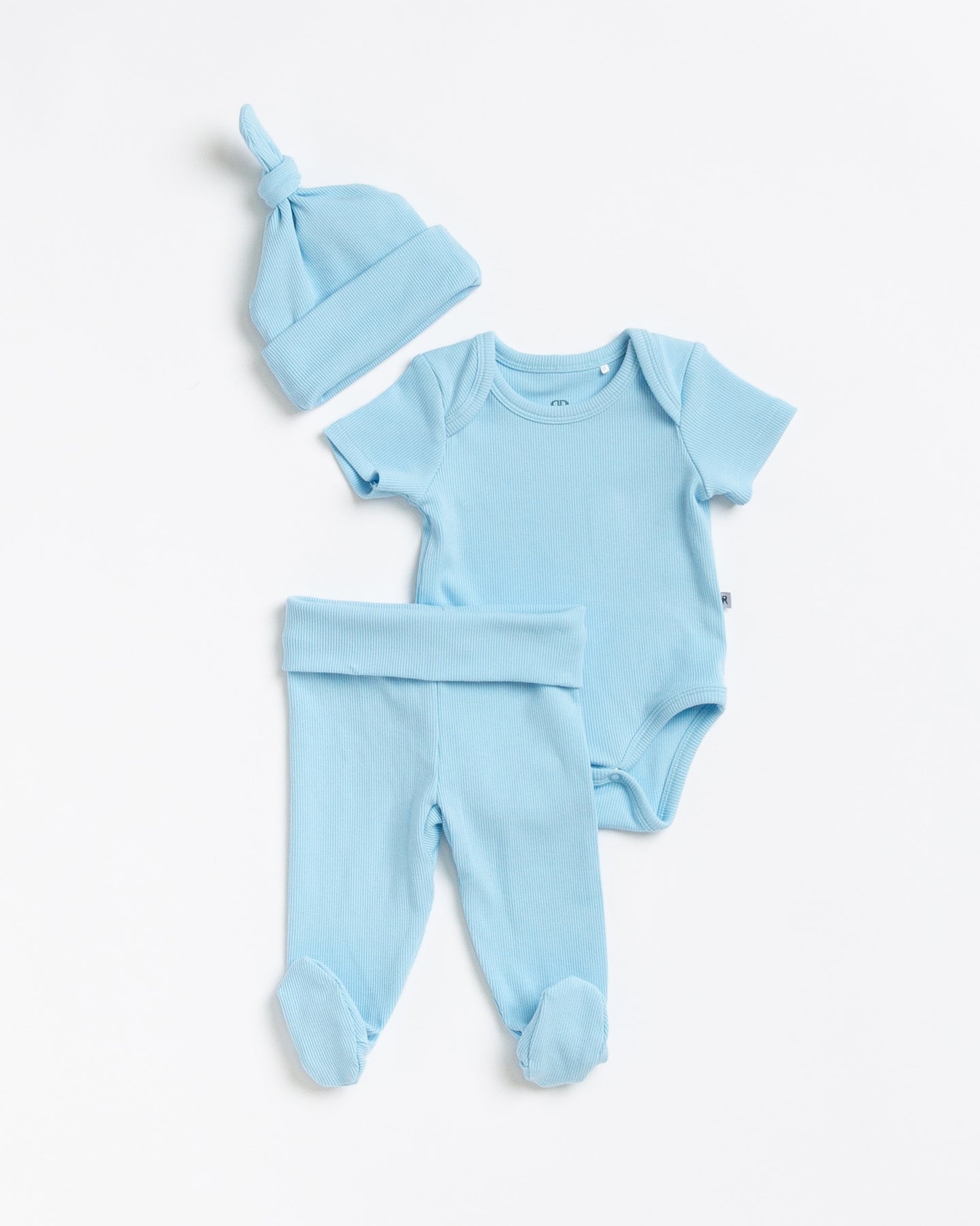- New ribbed fabrication! Set includes baby onesie, leggies and matching beanie
