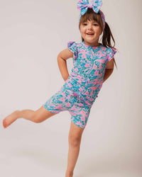 - Set includes double ruffle cap sleeve top and shorts