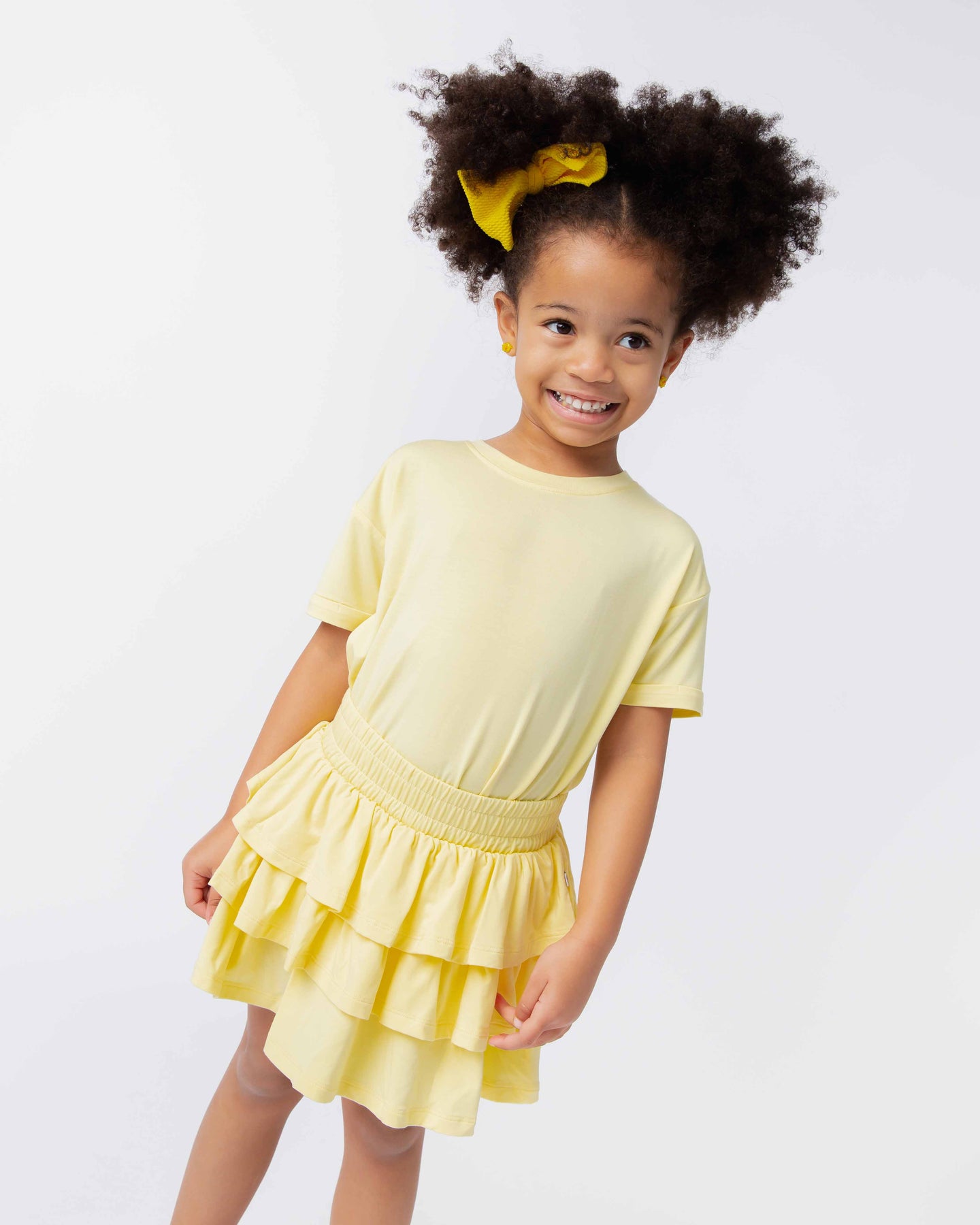 Twirl, play, and shine in this adorable multi-layer ruffle skort! Combining the look of a fun, flouncy skirt with the comfort of built-in shorts, it’s perfect for active days with a touch of flair. Layered ruffles add extra bounce and charm—perfect for school, parties, or playdates.