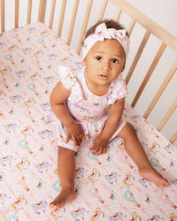 Enjoy a peaceful night of sleep with our signature Bums & Roses Bamboo Fitted Crib Sheets. Made from buttery soft bamboo, our sheets are gentle on sensitive or eczema-prone skin. Our temperature regulating bamboo will keep your baby cool in the warm months, and cozy in the winter. This sheet measures 28" x 52" to fit standard crib mattresses with a stretchy and secure elastic band. Your baby is sure to love bedtime with our new soft and beautiful bamboo crib sheets.