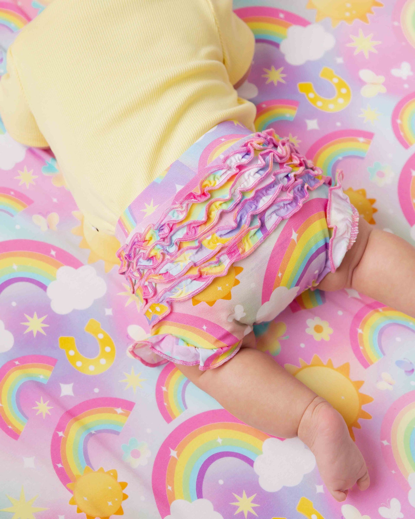 Sweet, soft, and made for little movers. Our Ruffled Bummies are designed especially for baby girls, featuring darling back ruffles for the perfect touch of charm. Crafted from 95% viscose from bamboo and 5% spandex, they’re incredibly soft, breathable, and gentle on delicate skin.