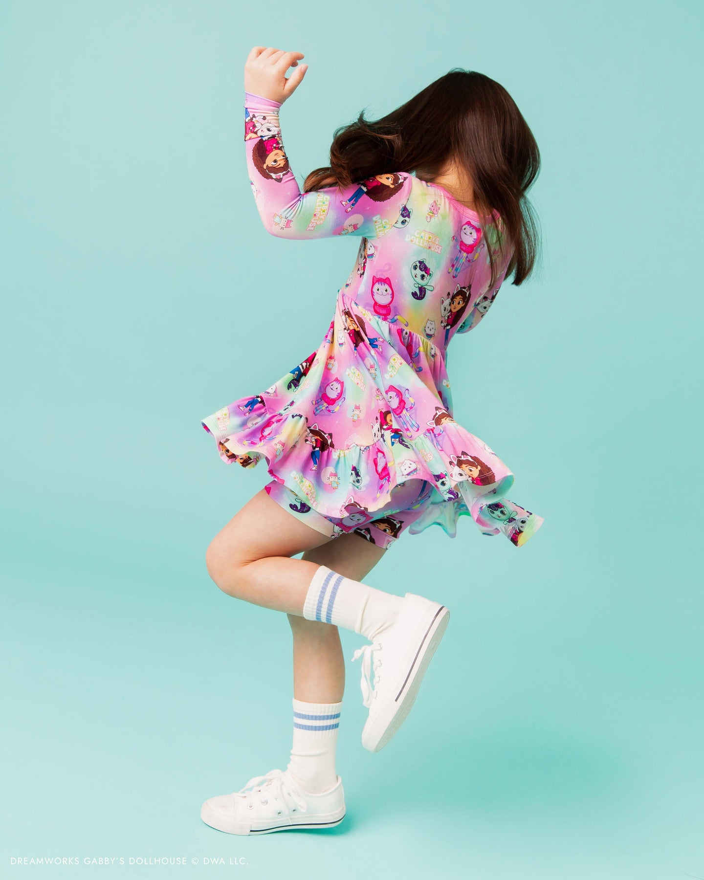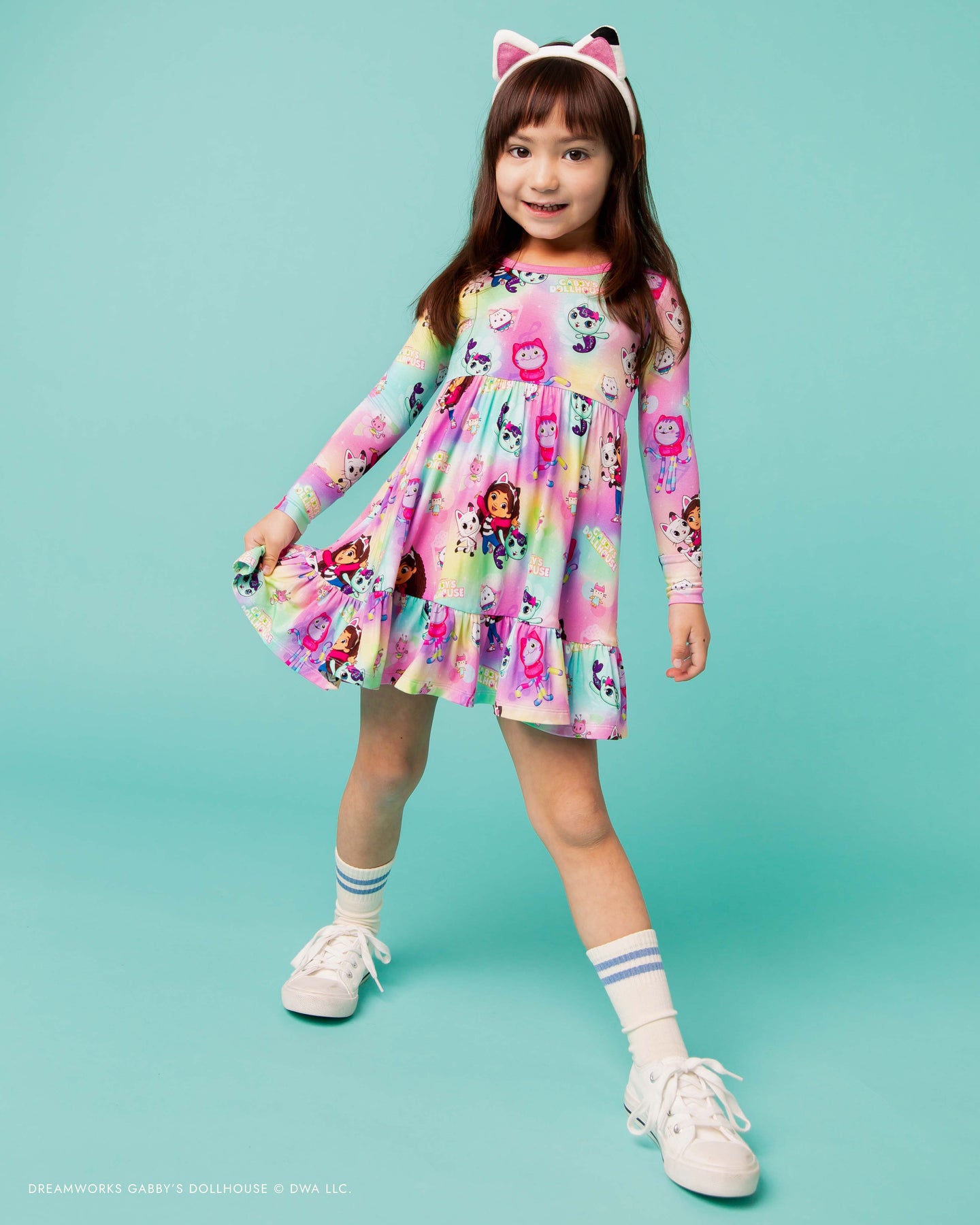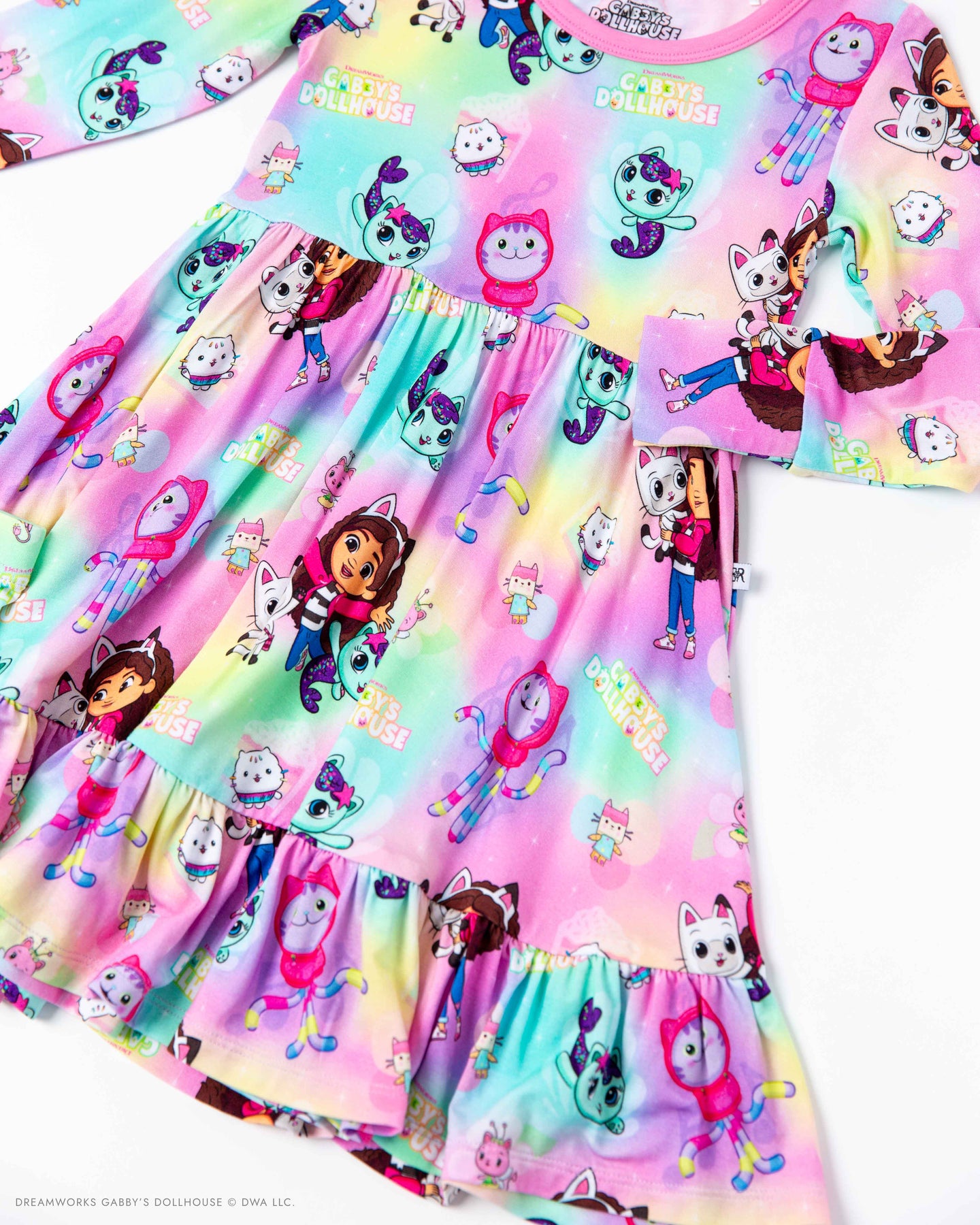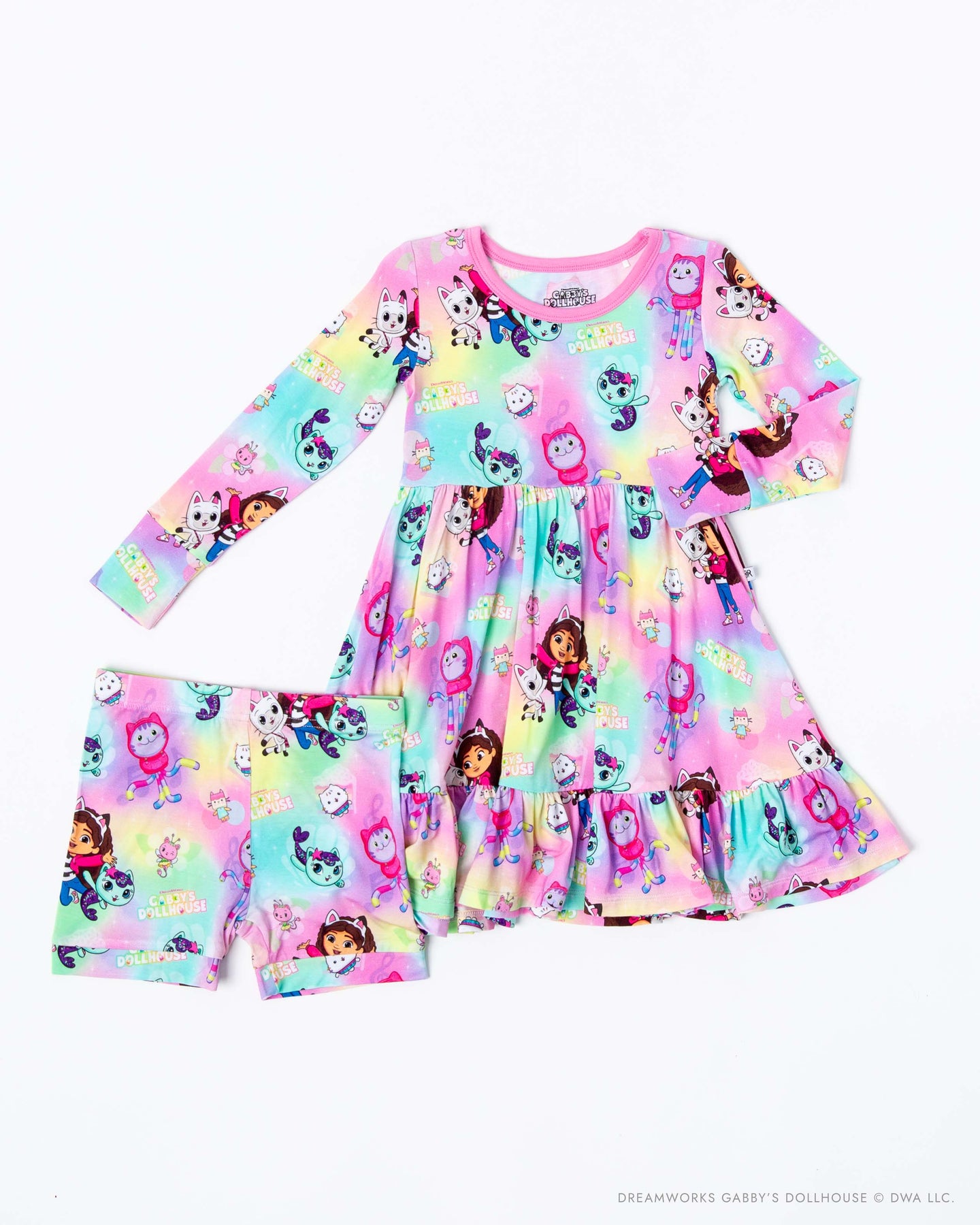 Play, lounge, and twirl in Dollhouse style! This dress features a colorful, playful character print and a comfy, easy-to-wear silhouette made for spinning, playing, and exploring.