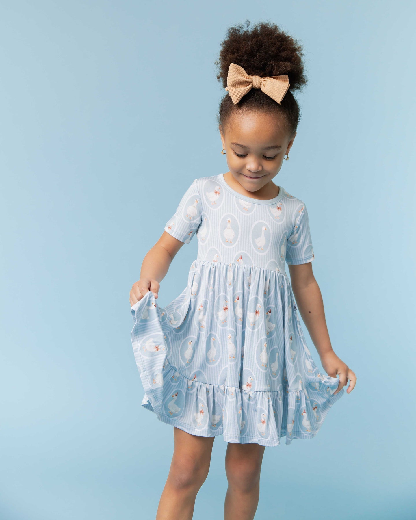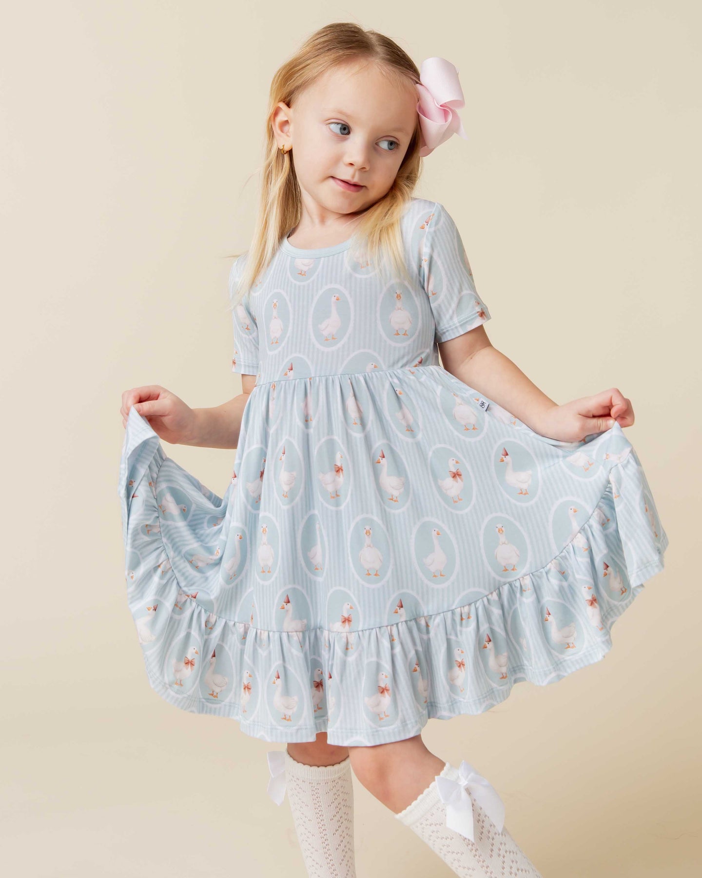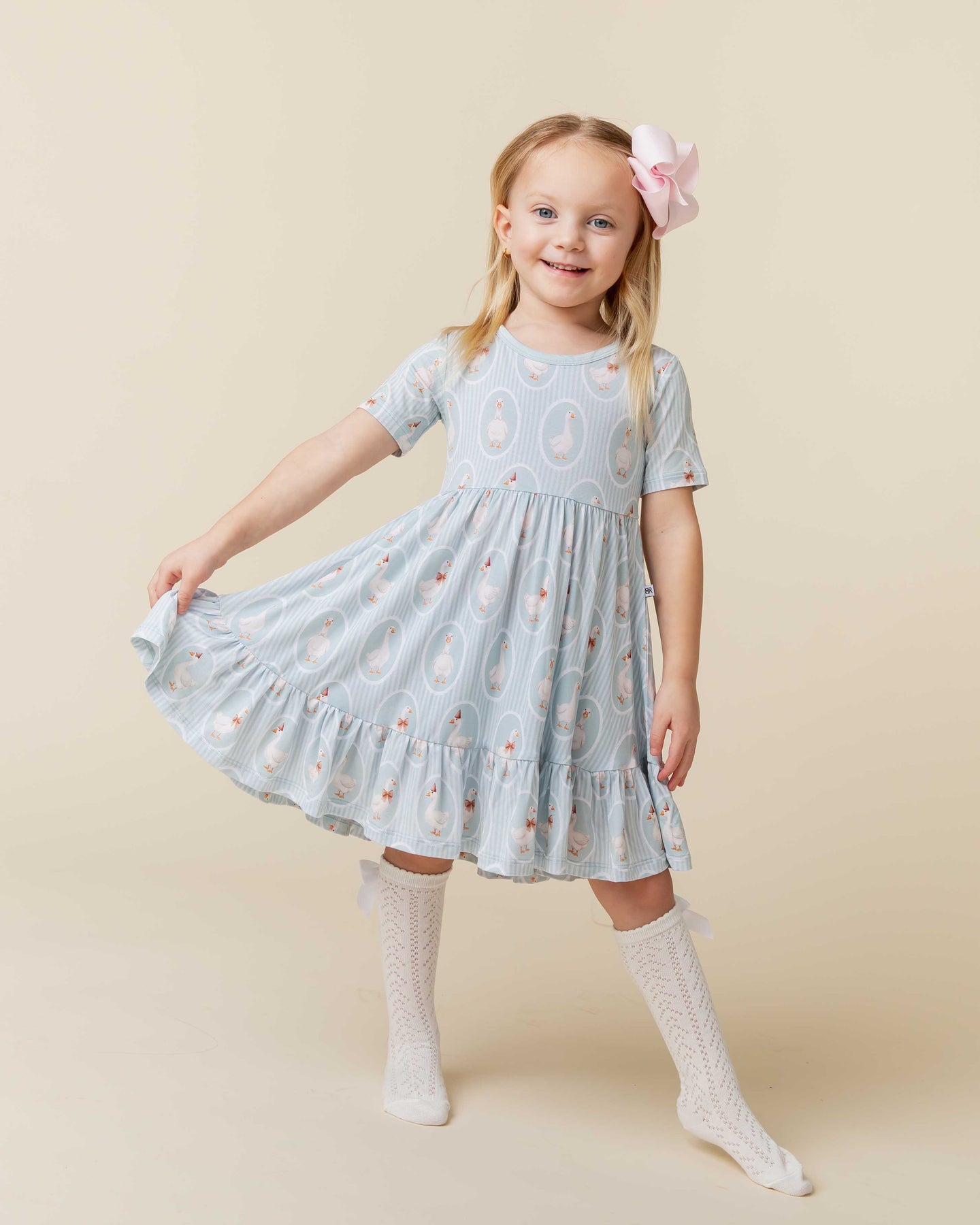 - Empire waist, short sleeve dress with lots of volume