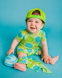 - Snaps along the inseam for easy diaper changes
