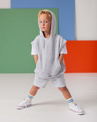 Elevate your little one’s comfort and style with this set. This versatile ensemble features a hooded top with a faux tee design underneath, giving the look of a layered outfit without the bulk. The set also includes matching bamboo shorts, offering both comfort and breathability.