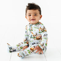 - Two-way zip to make late night diaper changes and mid day wardrobe changes effortless
