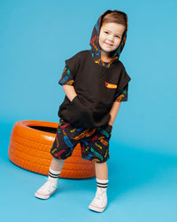 Elevate your little one’s comfort and style with this set. This versatile ensemble features a hooded top with a faux tee design underneath, giving the look of a layered outfit without the bulk. The set also includes matching bamboo shorts, offering both comfort and breathability.