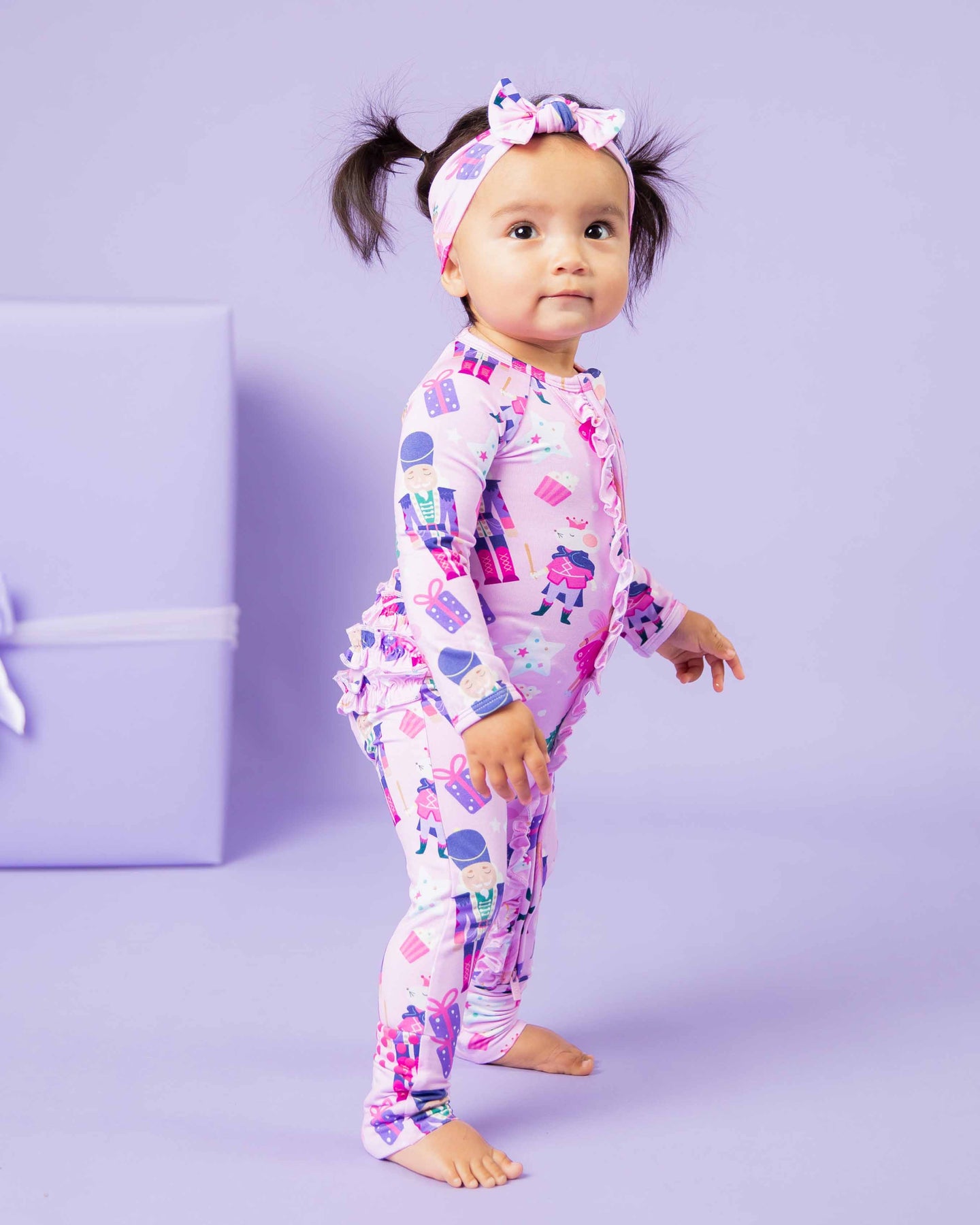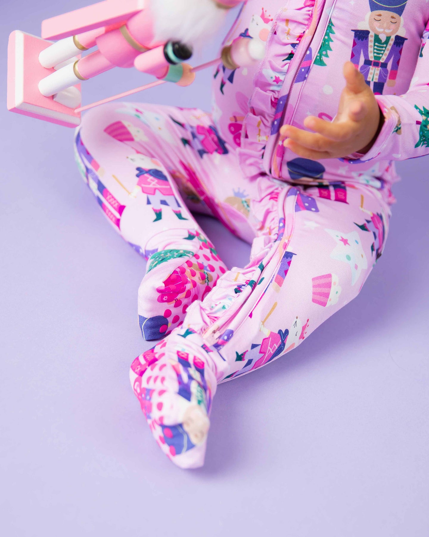 - Two-way cross-body front zipper, footless romper