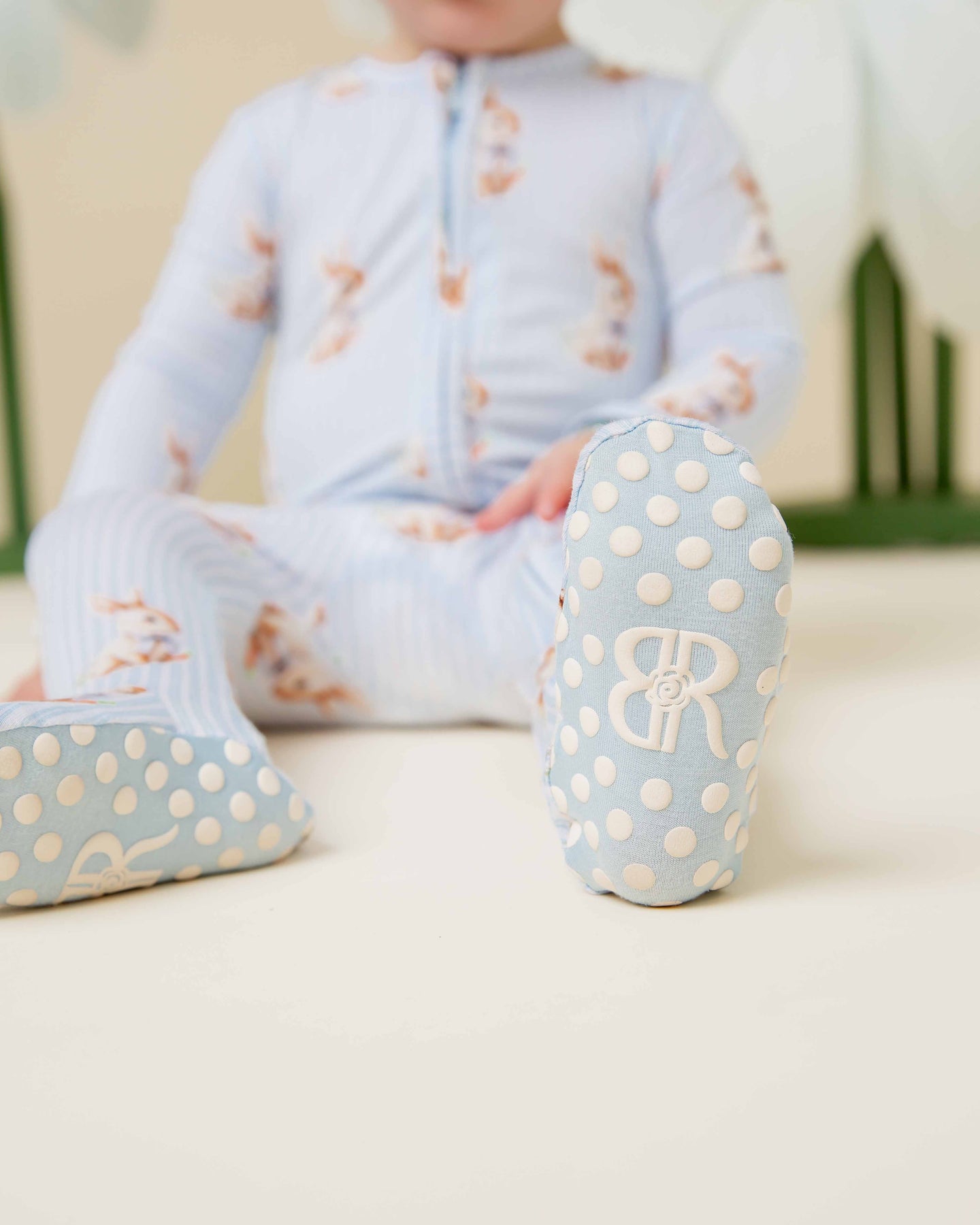 - Signature B&R footie grips for added traction