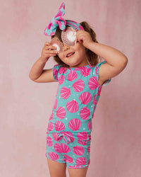 - Set includes double ruffle cap sleeve top and shorts