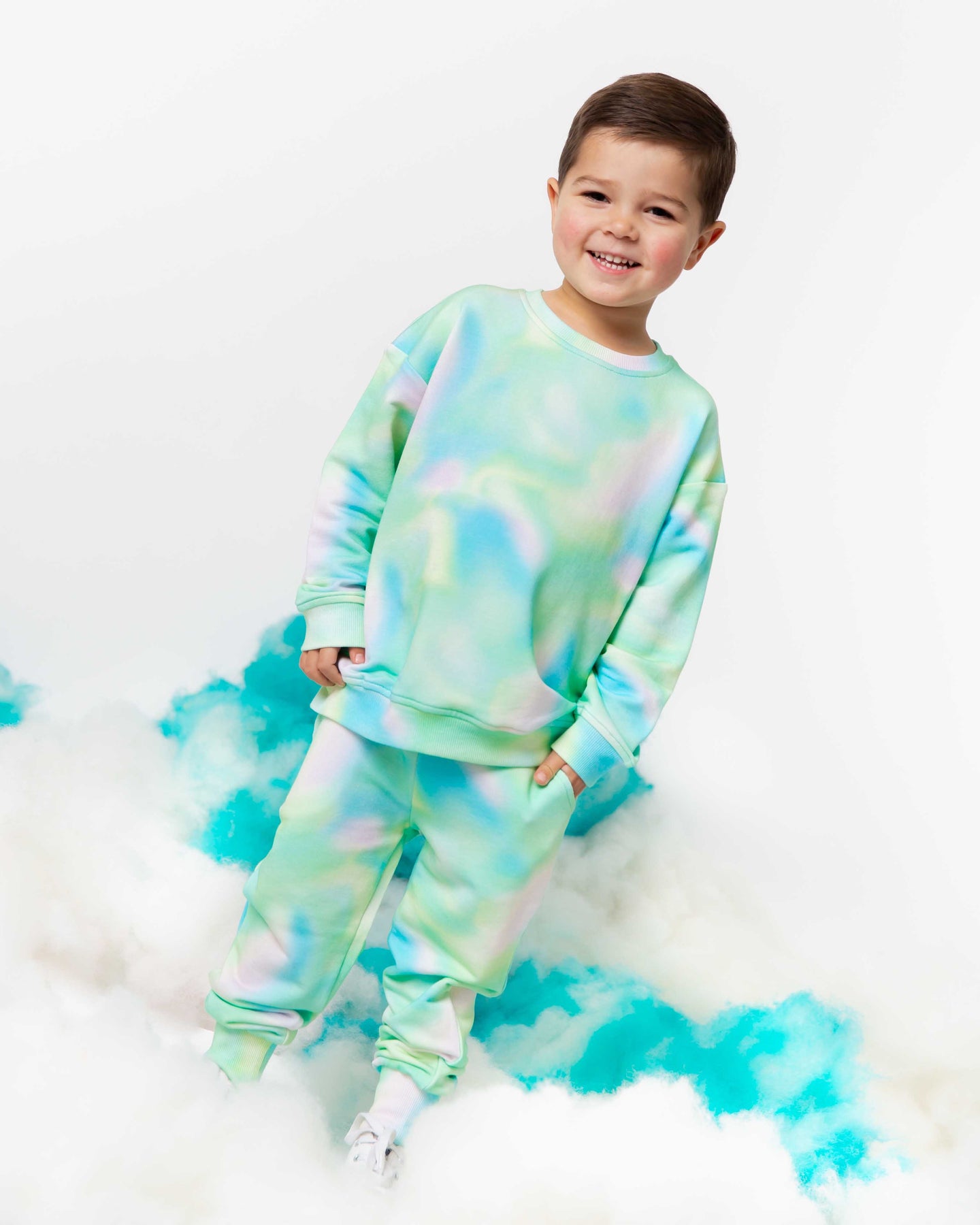 - Set includes long sleeve crewneck sweatshirt and more relaxed fit jogger pants