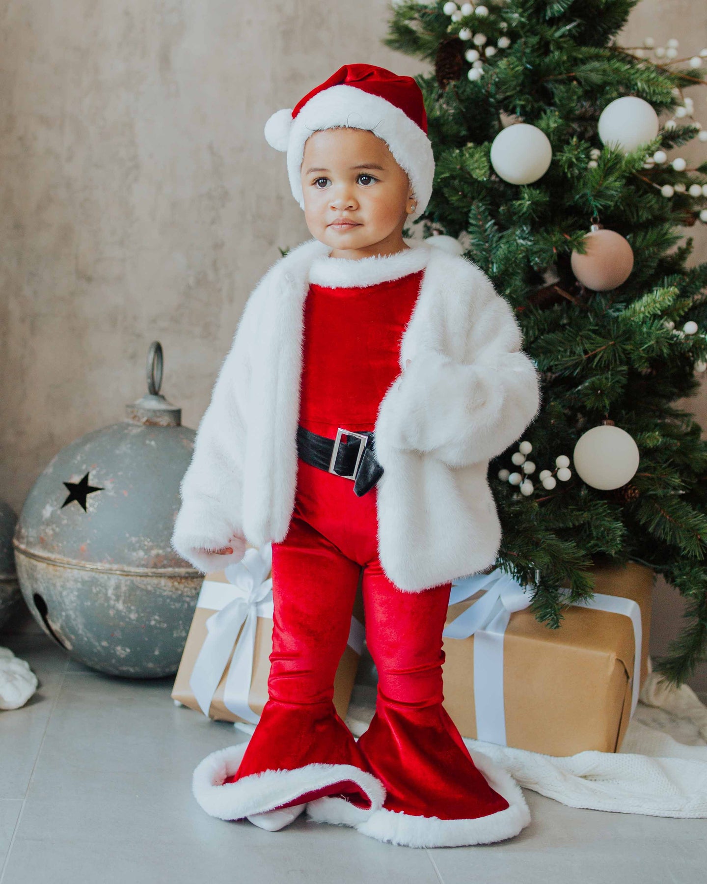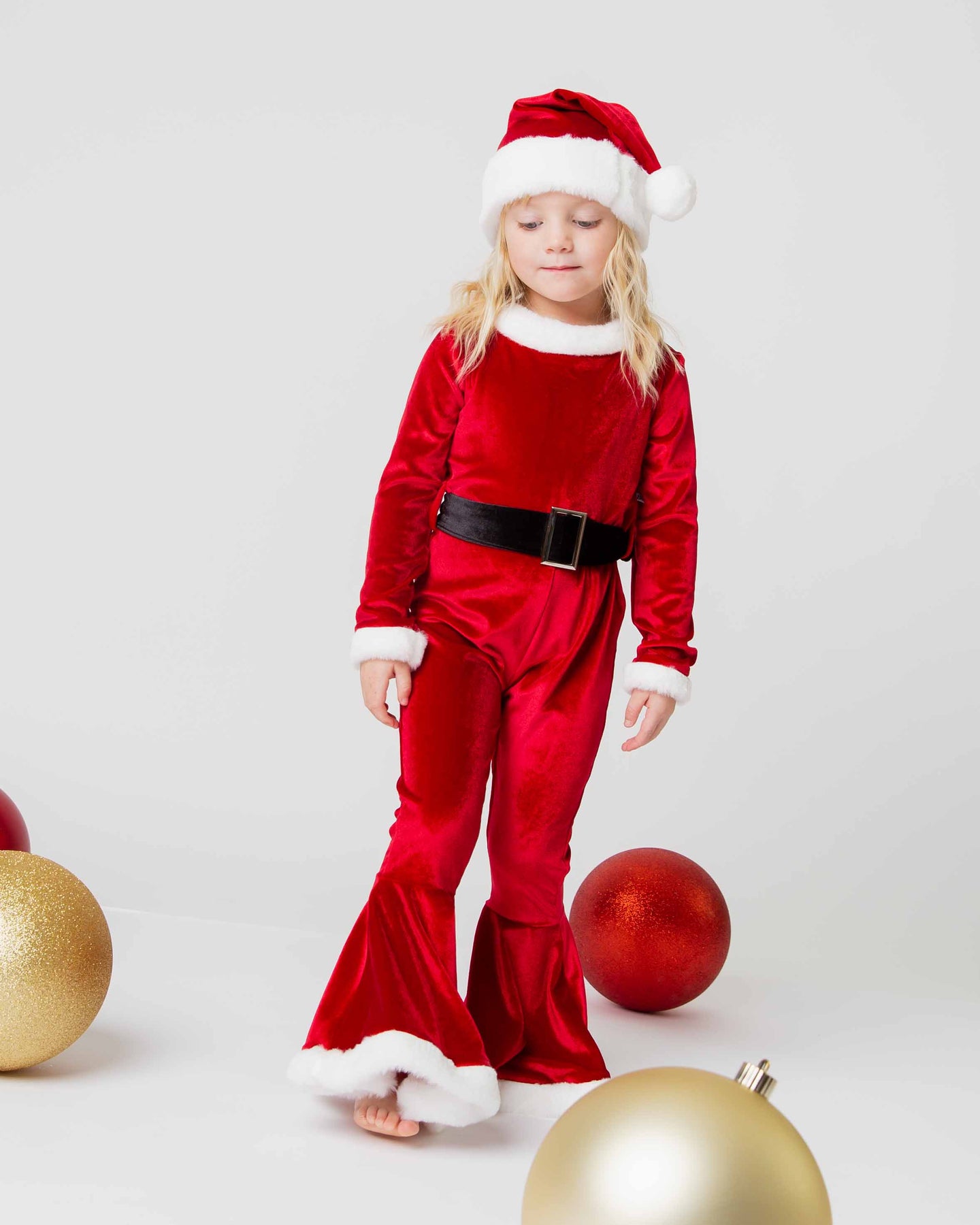 • Adorable matching Santa velvet hat to complete the look