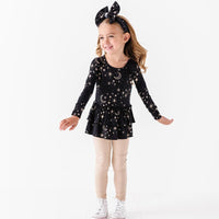 - Set includes long sleeve empire waist top and ruched tights
